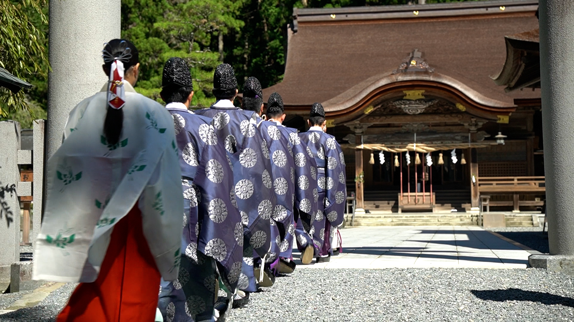 海を越えて木が運ばれ、再び神社として立ち上がる過程を、まるでその場にいるような臨場感で体験できるよう仕上げました。